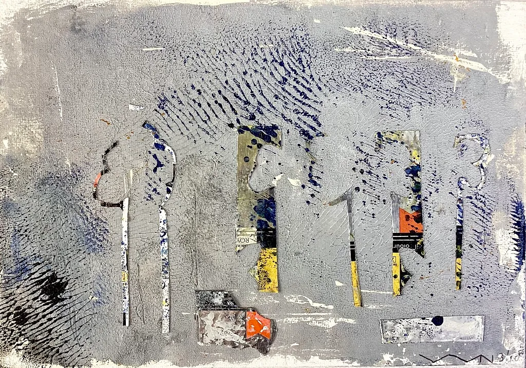 Metalwork, work on paper on panel with paint tubes, 2018, 29,7 x 21 cm