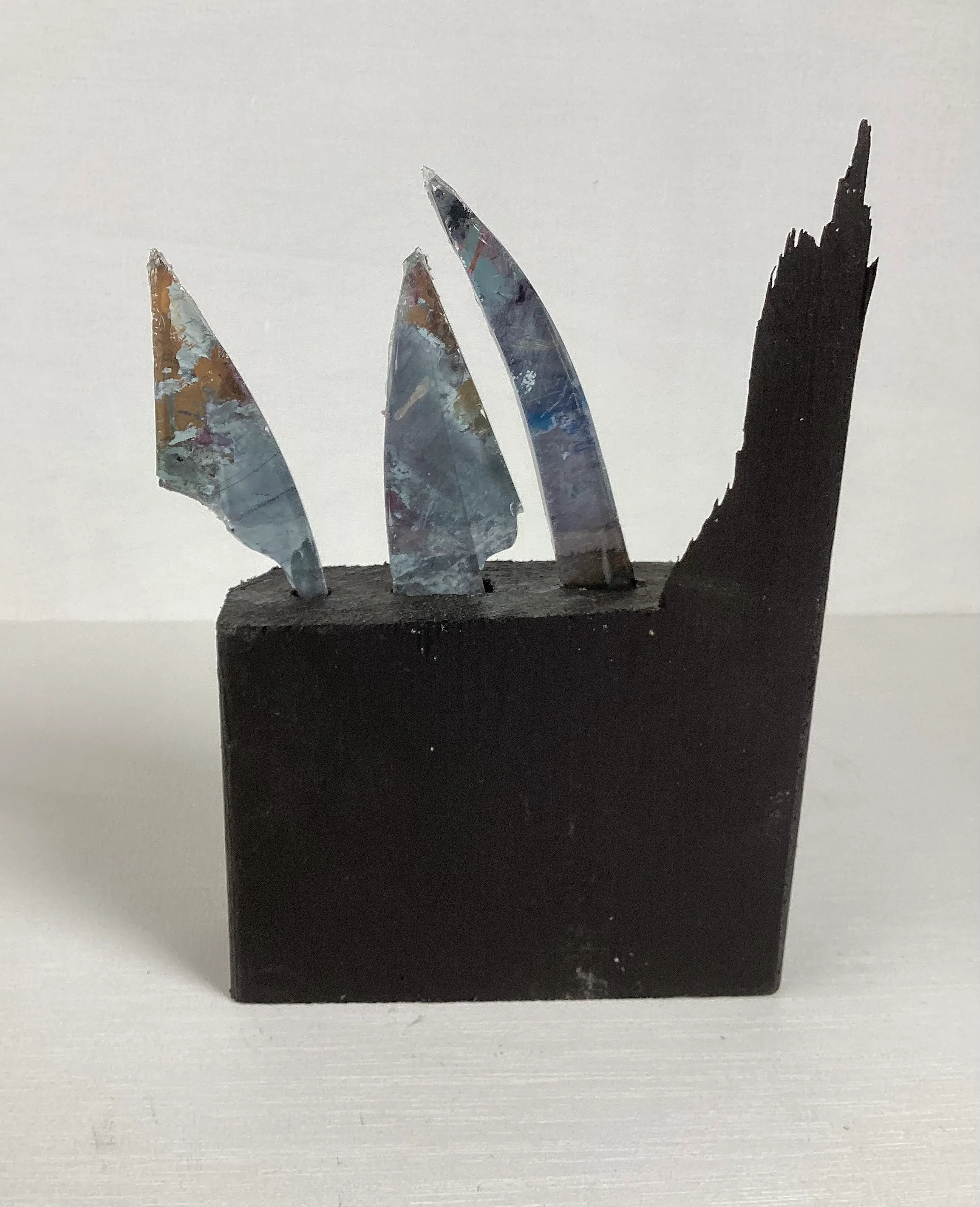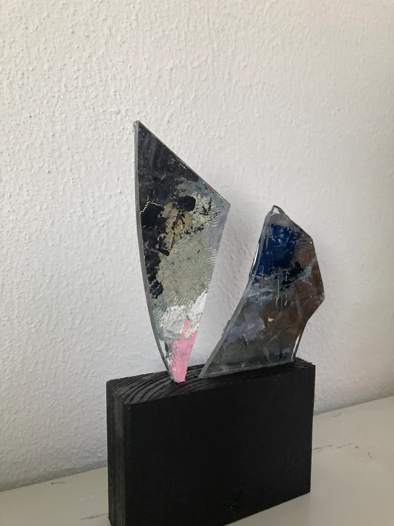 different sizes, my palet fell into pieces. I made sculptures of it. materials: glas, wood, oilpaint. 2023/24