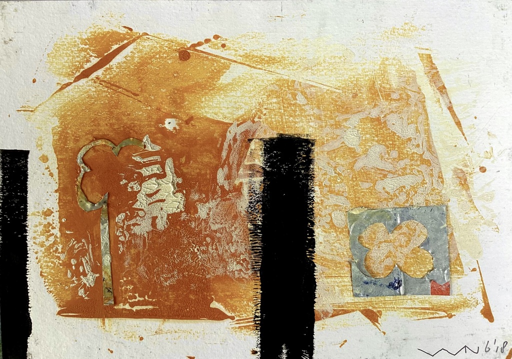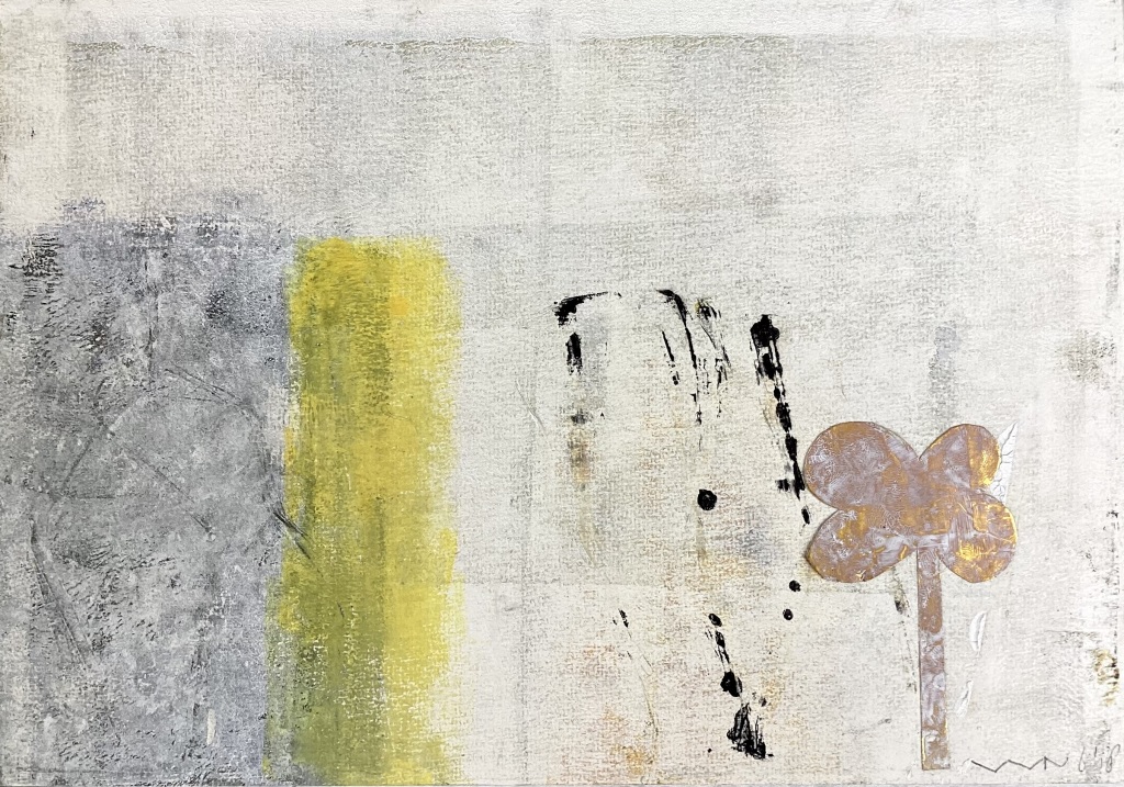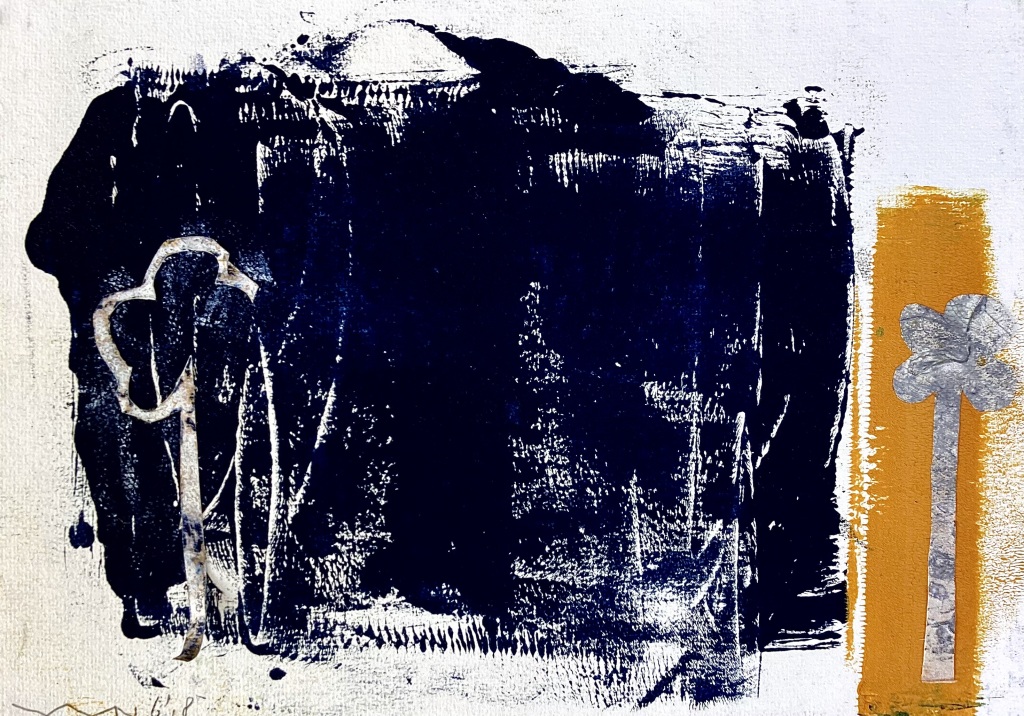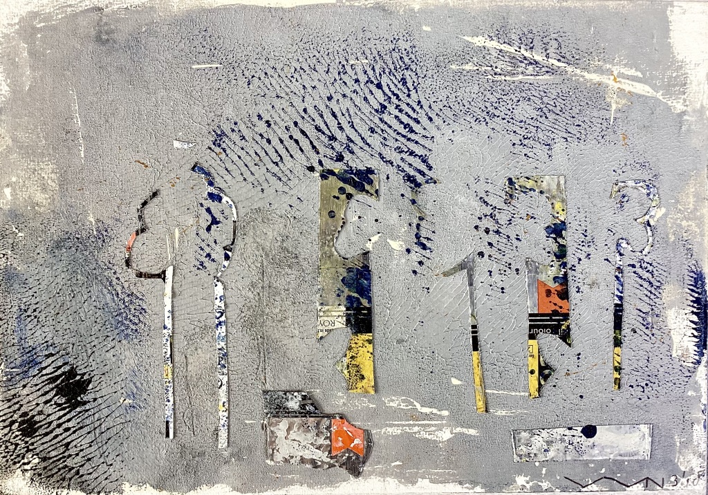 Metalwork, work on paper on panel with paint tubes, 2018, 29,7 x 21 cm